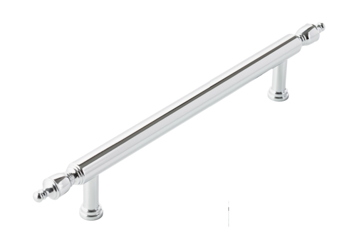 Элегантная ручка, выполненная в лучших традициях английского классического стиля. Изготовлена из цельной латуни, что гарантирует прочность и долговечность. Безупречное глянцевое хромирование подчеркивает изящество форм и придает интерьеру сдержанный блеск и респектабельный вид. Идеально подходит для мебели в кабинете, библиотеке или гостиной.